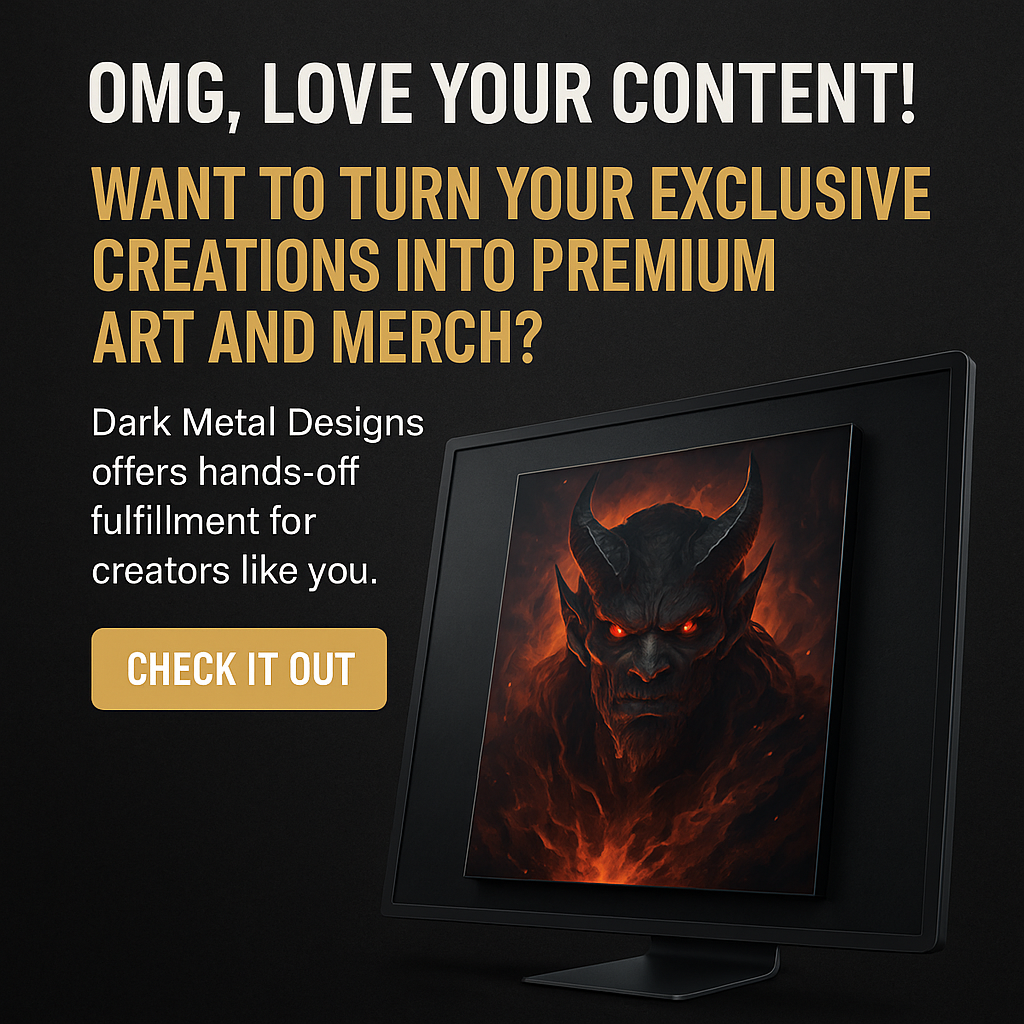Whether you’re launching a product line, selling limited editions, or upgrading your merchandise offerings, Dark Metal Designs provides hands-off production with obsessive attention to detail.